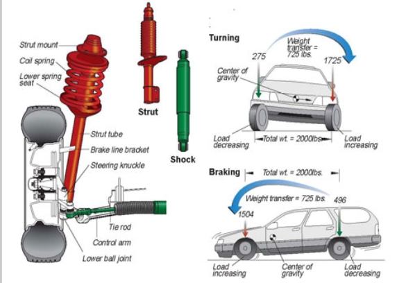 Because shocks and struts have so much to do with the handling of a car, they can be considered critical safety features. Worn shocks and struts can allow excessive vehicle-weight transfer from side to side and front to back. This reduces the tire's ability to grip the road, as well as handling and braking performance.